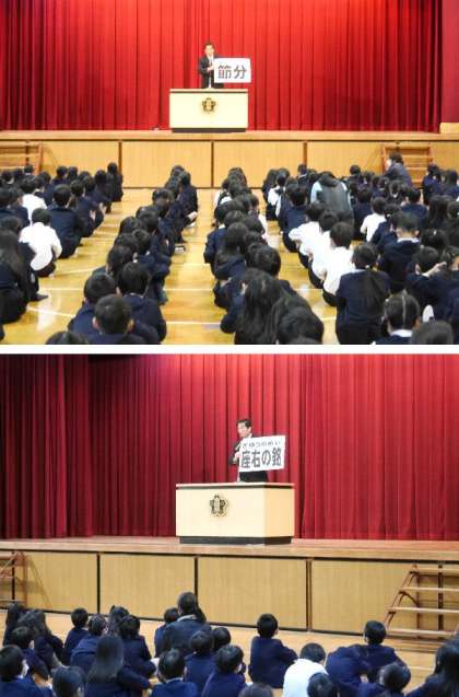 今日の全校朝会では、校長先生から「節分」についてお話しました。