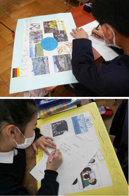 4年生では、未来の自分を自由にえがくことを楽しんで取り組んでいます。かなえた夢で誰を笑顔にしているか、夢をかなえた自分はどんな人になっているかなど、自分で考えて完成させていきます。