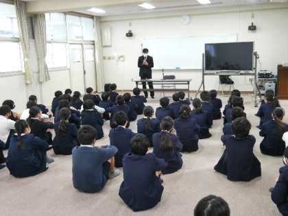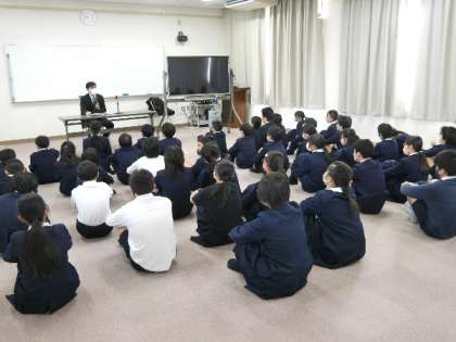 都島警察署の少年係の方にきていただき、非行防止教室としてお話をいただきました。おもに、被害にあわないようにするための注意などを教えてもらいました。