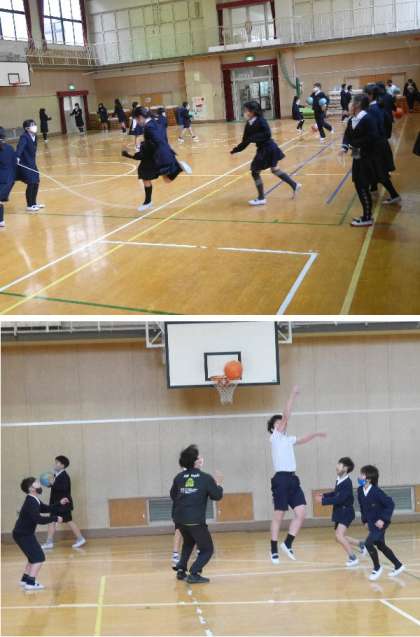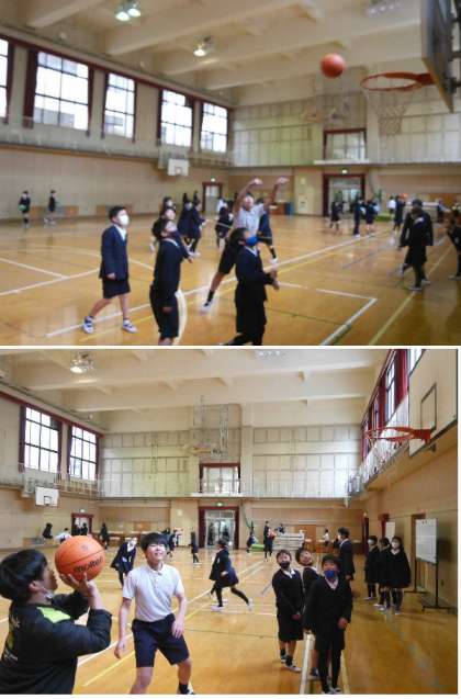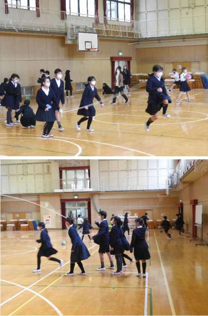 今日は雨天で運動場は使えませんが、講堂では5年生が楽しそうに遊んでいました。