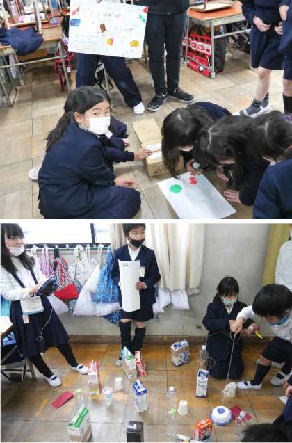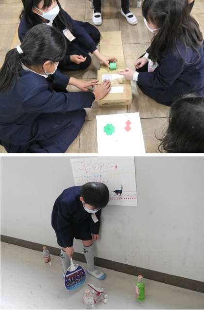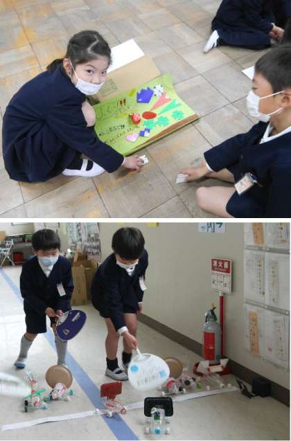 2年生は、工夫して作ってきたおもちゃを使って遊んでいました。レーシングカー、とことこ車、ころりんぽっちんなどで、楽しく遊んでいました。