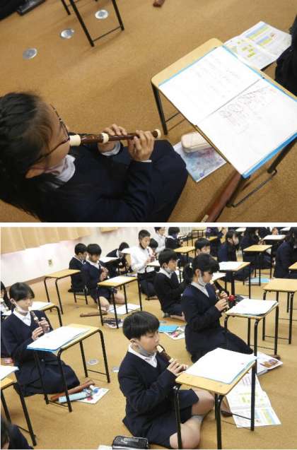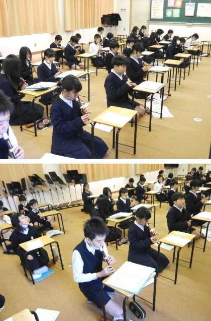 5年生が、「星の世界」という曲のリコーダー練習をがんばっていました。指使いがむずかしいですね。