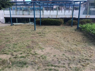 第二グランドのプールも、8月に入ってからは使用していません。そのため、雑草が伸び放題。二学期になれば、子どもたちが楽しみにしているプール水泳が始まります。草刈り機を使って、さっぱりと綺麗にしました。