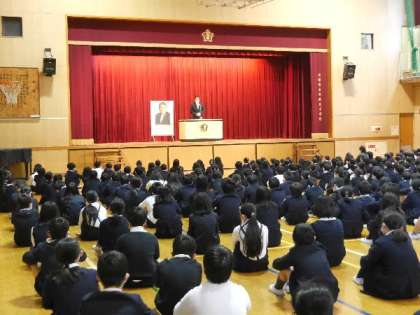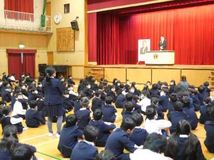 毎週月曜日は全校朝会があります。校長先生からは、北野武さんの小学生の時に父にしかられたお話をしました。