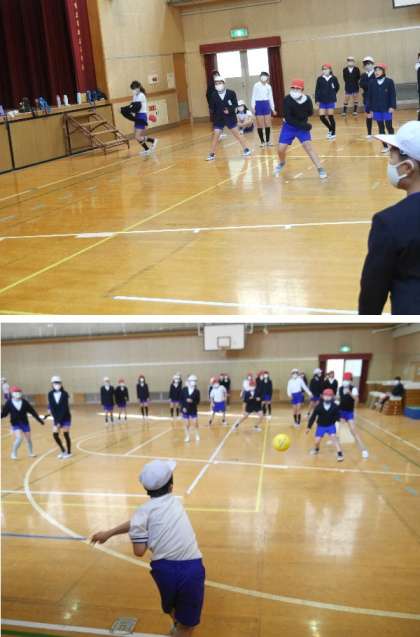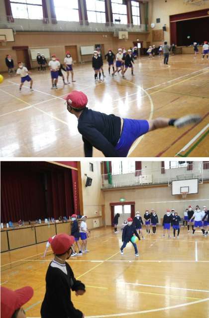 5年生では、体育館で学級対抗でドッヂボールをしていました。