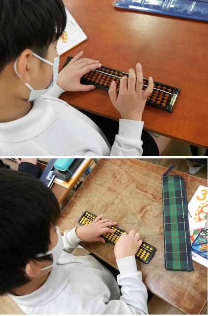 3年生の算数の最後は、そろばんについて学習します。実際にそろばんを使って計算をしてみます。考えなくても計算ができてしまいますね。そのしくみについても知りましょう。