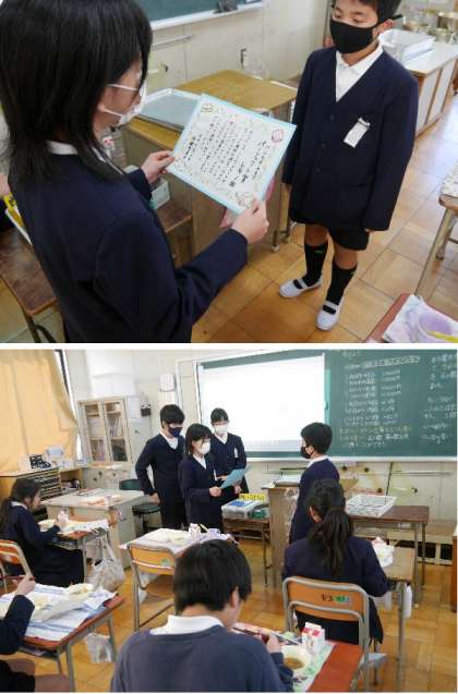 保健委員会が、健康週間の調査結果の表彰をしていました。「ハンカチ・マスク パーフェクト賞」がわたされました。