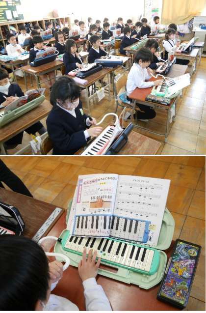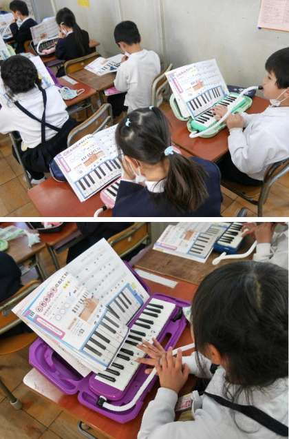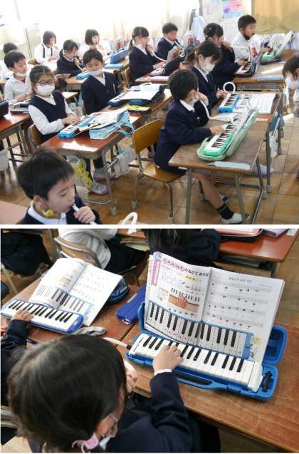 1年生が鍵盤ハーモニカで、どれみふぁその音を練習しています。だいぶ、みんなの音があうようになってきました。