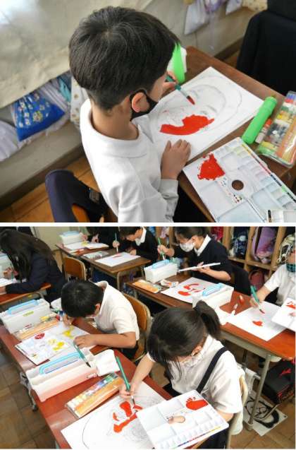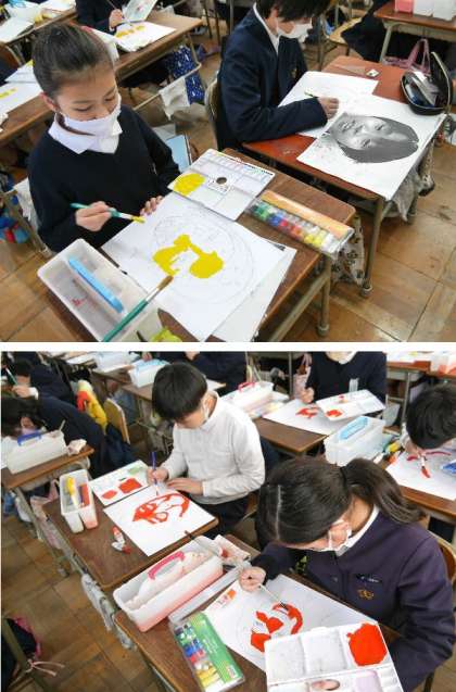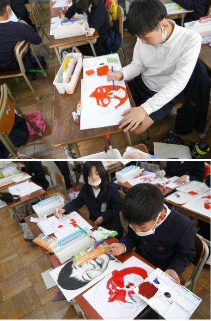 4根性の図工では、自分自身の顔をアートにしています。顔の写真から、諧調に塗り分けていきます。
