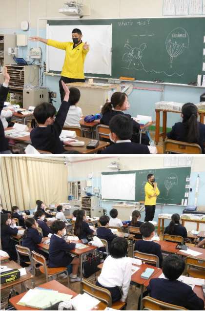 3年生の英語活動に、クリス先生が来てくれました。今回は「What's this?」でした。アルファベット3文字、さて何でしょうか。