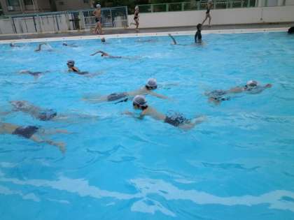 風が秋を感じさせるようになりましたが、6年生は今日も元気にたくさん泳いで遊びました!