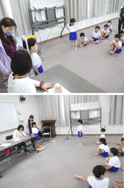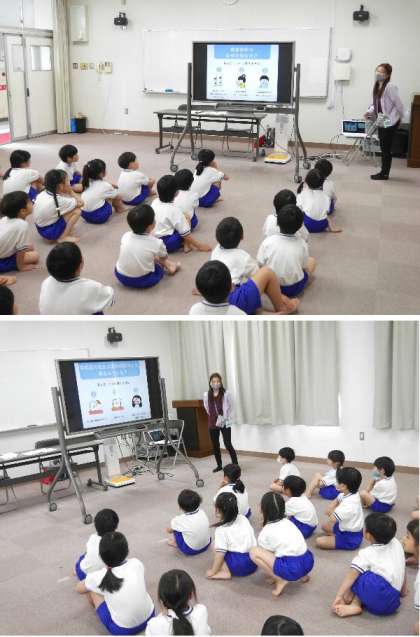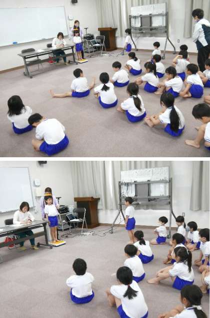 各学年各学級ごとの発育測定が始まりました。多目的室で順に測定します。1年生が小学校でのはじめての発育測定です。保健室の先生から、なぜ発育測定をするのかなどのクイズと説明がありました。小学校6年間でどれだけ成長するかな。