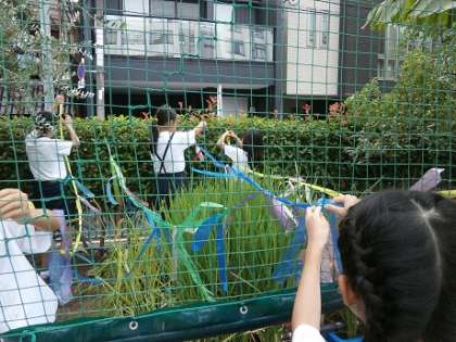 5年生が育てている「東都ひかり(ひがみやひかり)」が、穂をつけはじめました。
