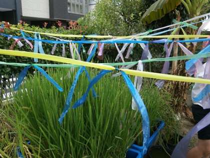 そこで、稲穂を守るために、鳥よけを作って設置してみました。