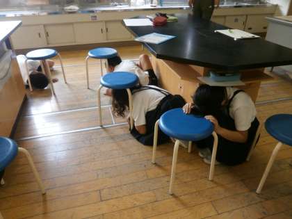 授業中でしたが、耳をすましてよく聞いて訓練に参加しました。