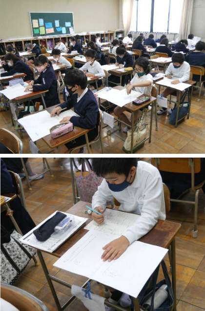 今日は、大阪府の学力テスト「すくすくウォッチ」を5・6年でおこないました。5年生は、国語、算数、理科、わくわく問題、アンケート。6年生は、理科、わくわく問題、アンケートを実施しました。