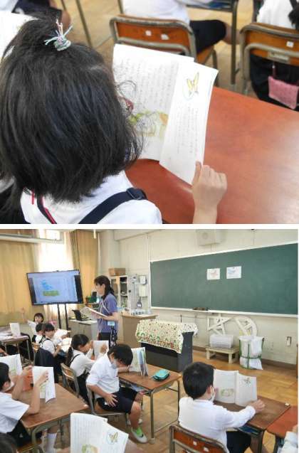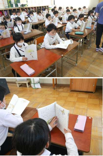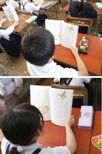 2年生の国語の最初の読み物は「風のゆうびんやさん」です。お話を音読しています。