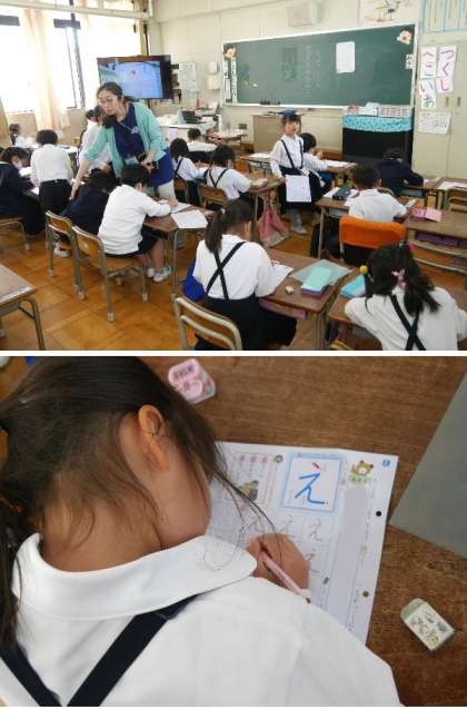 1年生は、4月は給食が終わったら下校していましたが、5月からは、本来の5時間授業となります。5時間目は国語のひらがなの練習をしていました。少し眠たくなるかもしれませんが、体力をつけてがんばっていきましょう。特に、休みあけはリズムを崩して寝不足がちなので、規則ただしい生活にこころがけましょう。