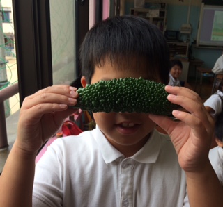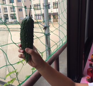 先日お伝えした、3年2組の窓辺にできたゴーヤが大きくなったので、収穫しました。立派に成長しました。子どもたちも、ゴーヤと同じく、日に日に成長しています。