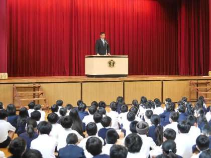 今日の全校朝会は講堂で行いました。大阪市が「いじめを考える日」として、全校でいじめについて考える日としています。10年前に「いじめ防止対策推進法」が施行され、子どもたちが安心して学習や゜活動に取り組めるように、いじめがなくなるようにするものです。校長先生から、いじめをしないようお話しました。