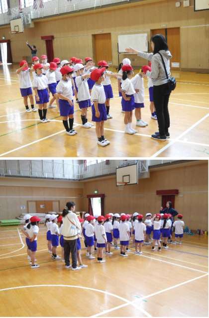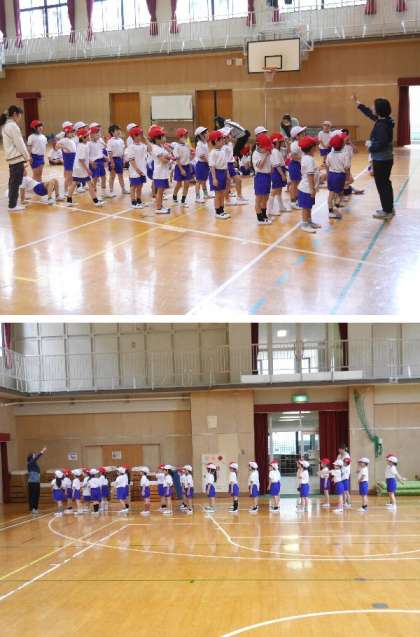 1年生では、2列から4列に並ぶ練習をしていました。しっかりと並ぶために、担任の先生の話をよく聞いて行動できるようになりましょう。