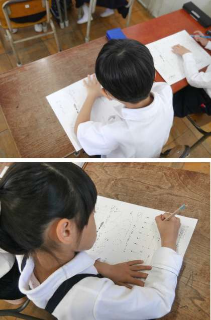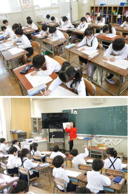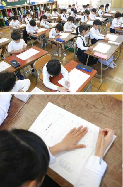 1年生では、はじめてのテストを受けていました。テストは鉛筆で線をなぞったりする簡単なものです。各教科の単元ごどに、小テストがあります。なれておきましょう。