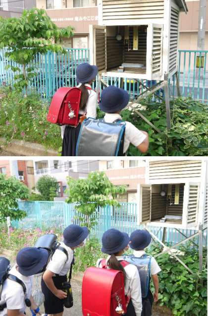 学校の玄関を入ったところに百葉箱があるのをご存じでしょうか。4年生の理科の学習のひとつとして、子どもたちが登校してすぐに、百葉箱を見にきていました。温度計を見て確認していました。今日の朝は18度でした。