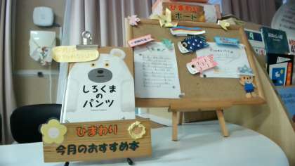 みなさん、本を読みに来るのといっしょに、ボードのメッセージも読みにきてくださいね。