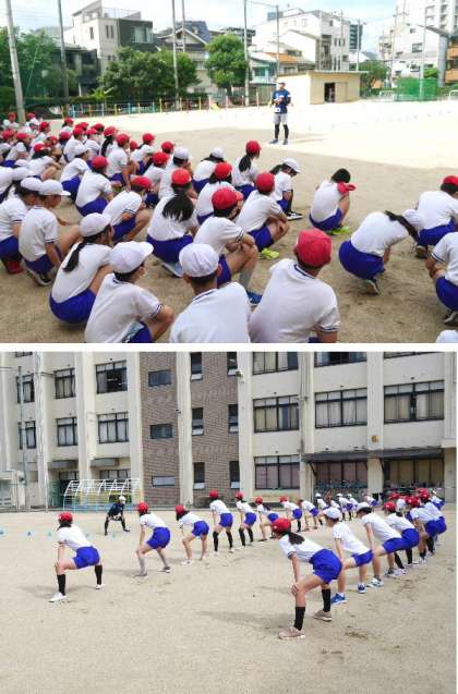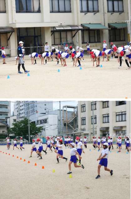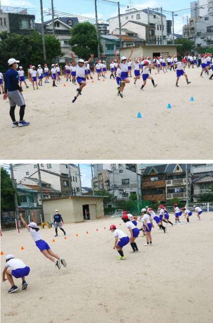 区役所の体力向上事業として、各学年で出前授業をしていただきました。明日から始まる体力テストの向上のためのいろいろな運動を練習していただきました。