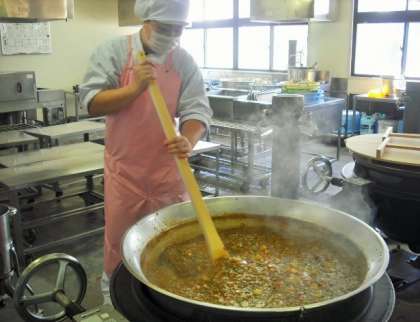 9月、10月は食物アレルギー対応サポート月間です。小麦アレルギーがある児童もみんなと同じカレーライスが食べられるように、米粉のカレールウを使ったビーフカレーライスです。いつものカレールウよりもサラッとした仕上がりになるので、給食室ではルウを入れたあとも20分ほどよく煮込みました。「教室では、めっちゃおいしい。」と好評でした。