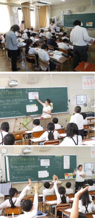 4年生の算数で研究授業が行われました。教員の授業力の向上のために教育委員会からも講師先生にきていただきます。