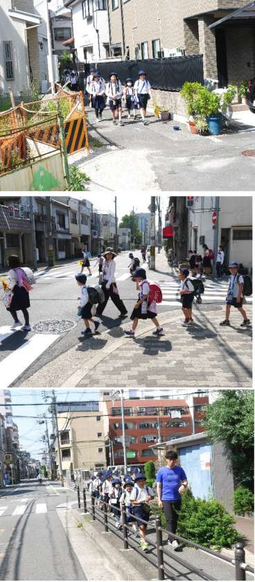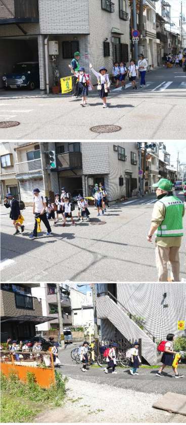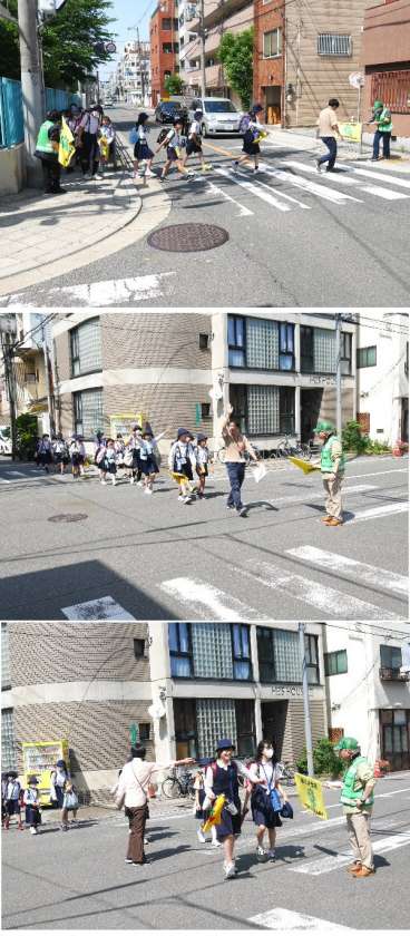 地域の見守り隊の方々が、通学路の安全を見守っていただいています。いつもありがとうございます。