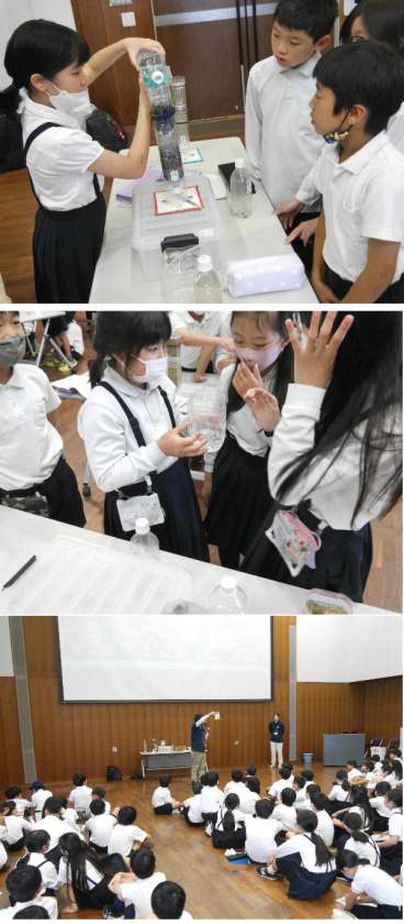 4年生の社会見学では、柴島浄水場を見学・体験をしました。にごったにおいのある淀川の水を、ろ過や活性炭素できれいにする実験をおこないました。