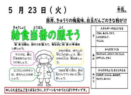 今日の献立は、豚丼、きゅうりの梅風味、白玉だんごのきな粉がけ、牛乳でした。