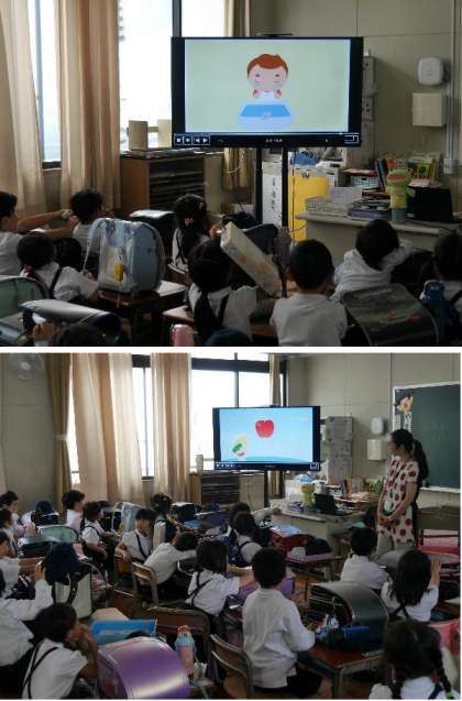 大阪市では、フォニックスで低学年から英語の発音練習や聞き取りなどの練習を、DVDを使って行っています。