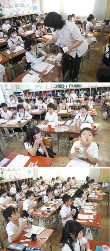 歯科校医にきていただき、はみがき指導が行われました。歯垢をじょうずにみがく練習をしました。歯に歯垢がみえるように色をつけてみがきました。