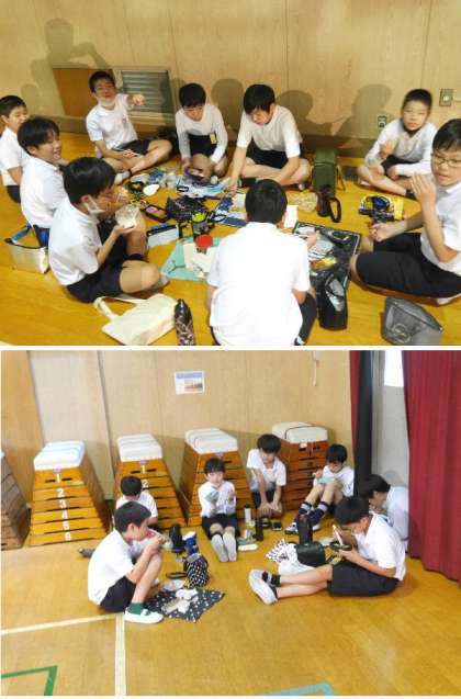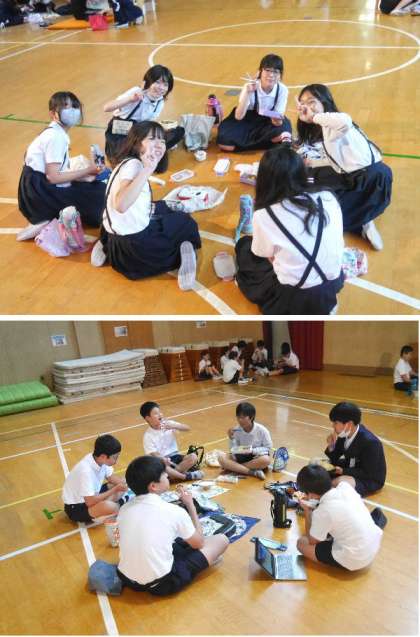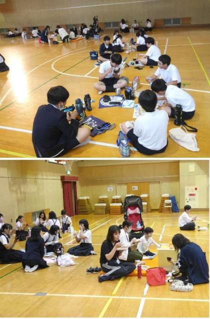 大雨で、6年生の社会見学は延期となりました。しかし、給食は急な変更追加はできないので、6年生はお弁当をいただきました。講堂でみんなで楽しくいただきました。
