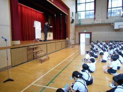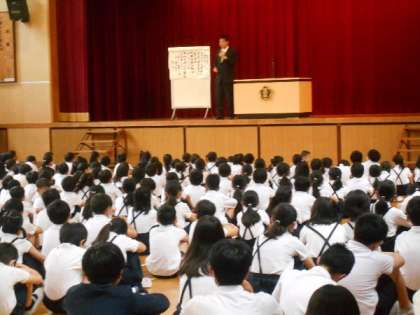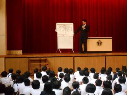 毎週月曜日は、全校朝会があります。校長先生からは、詩家で書家の相田みつをさんについて紹介しました。