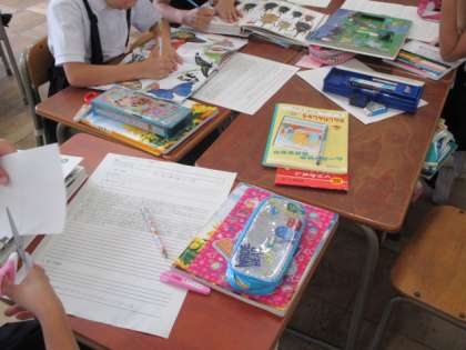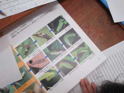 3年生が、図鑑やタブレットを使って、いろんな昆虫の特徴を調べています。