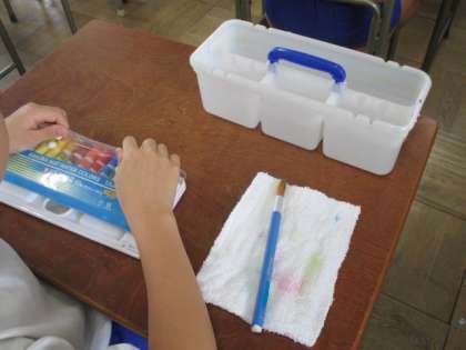 3年生では、水彩絵の具を使って絵を描くようになります。