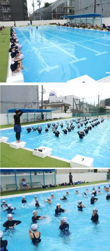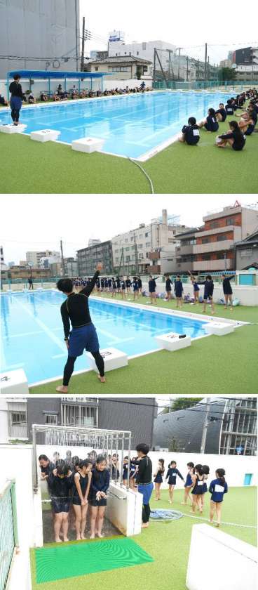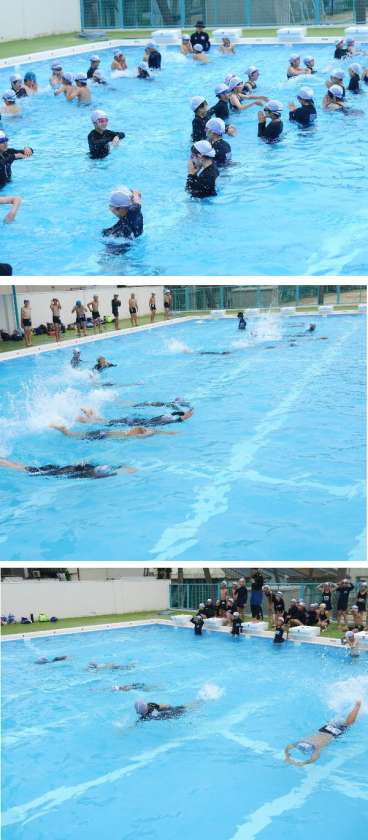 午後からは天気ももちなおし、5年生がプールに入りました。どけだけ泳げるか測っていました。