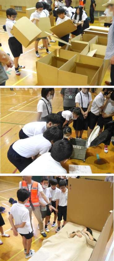6月17日 土曜授業!5年防災学習【段ボールベット・簡易トイレ】