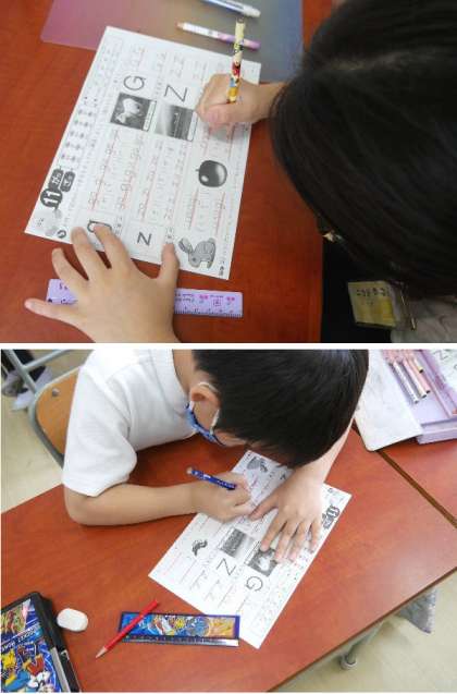 3年生では、ローマ字を書く練習をしていました。パソコンで入力するときも必要となるので、しっかりとおぼえてくださいね。