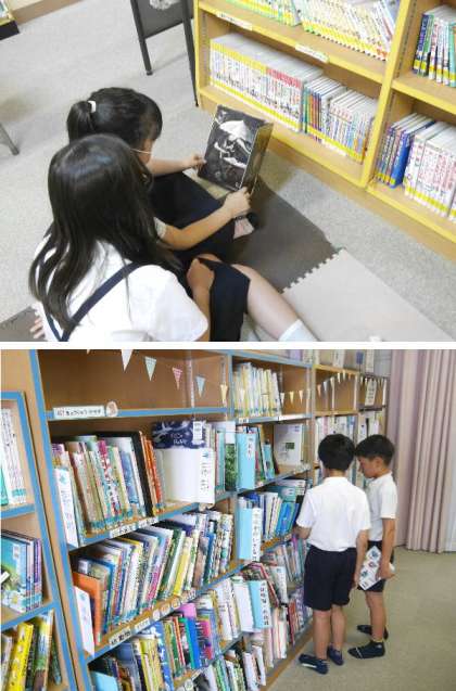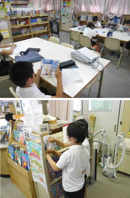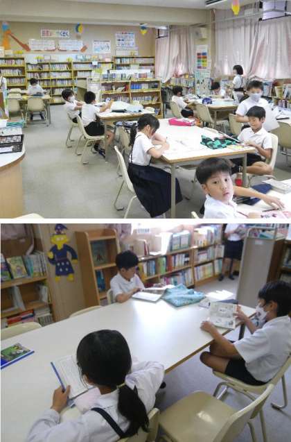 各学級ごとに、週1時間は図書館の時間があります。4年生が利用していました。