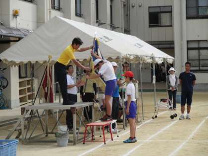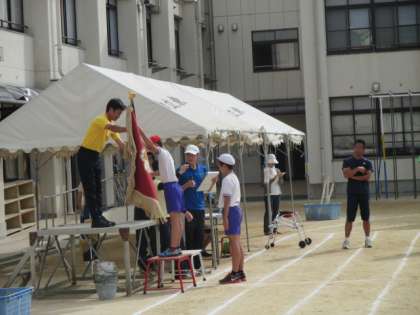下の写真は、「優勝旗授与」の練習を紅組と白組双方が行いましたが、ここであるミスおこりました。