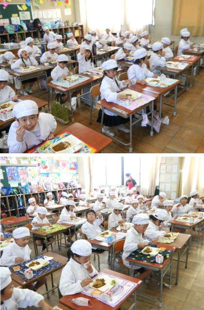 子どもたちの大好きなカレーライスで子どもたちのテンションも高いです。