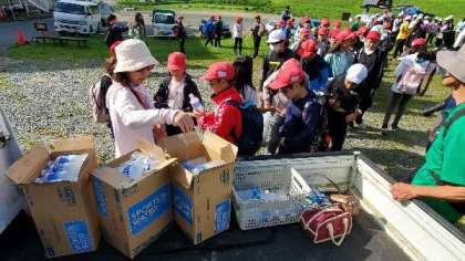 今から山のぼりに出かけます。凍ったスポーツドリンクを持って行きます。