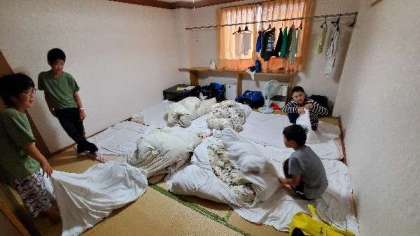 3日目の朝6時です。起床して、シーツも片付けます。