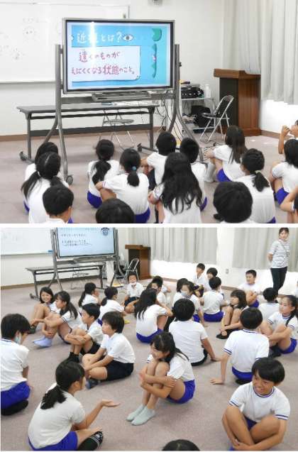 5年生が身長と体重の発育測定をしています。発育測定のあと、保健室の先生から、視力についてのお話がありました。最近は、小学生もスマホやタブレットを使う機会が多くなり、視力低下が心配です。特にスマホでは、近距離で集中して長時間見ていることも多いので、使い方については考える必要がありますね。