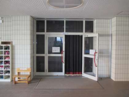 入口のカーテンがぴったり閉められています。